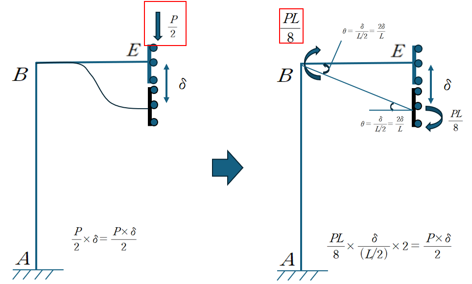 하중 P/2를 등가절점하중 PL/8로 변환할 수 있습니다.