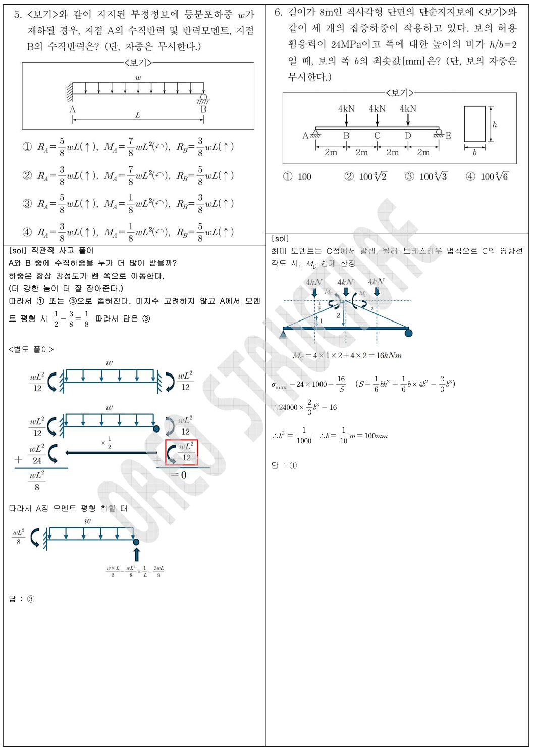 - 14 (재료역학 기본서에 자주 등장하나 기출에서는 자주 등장하지 않음 + 계산량 많은편)