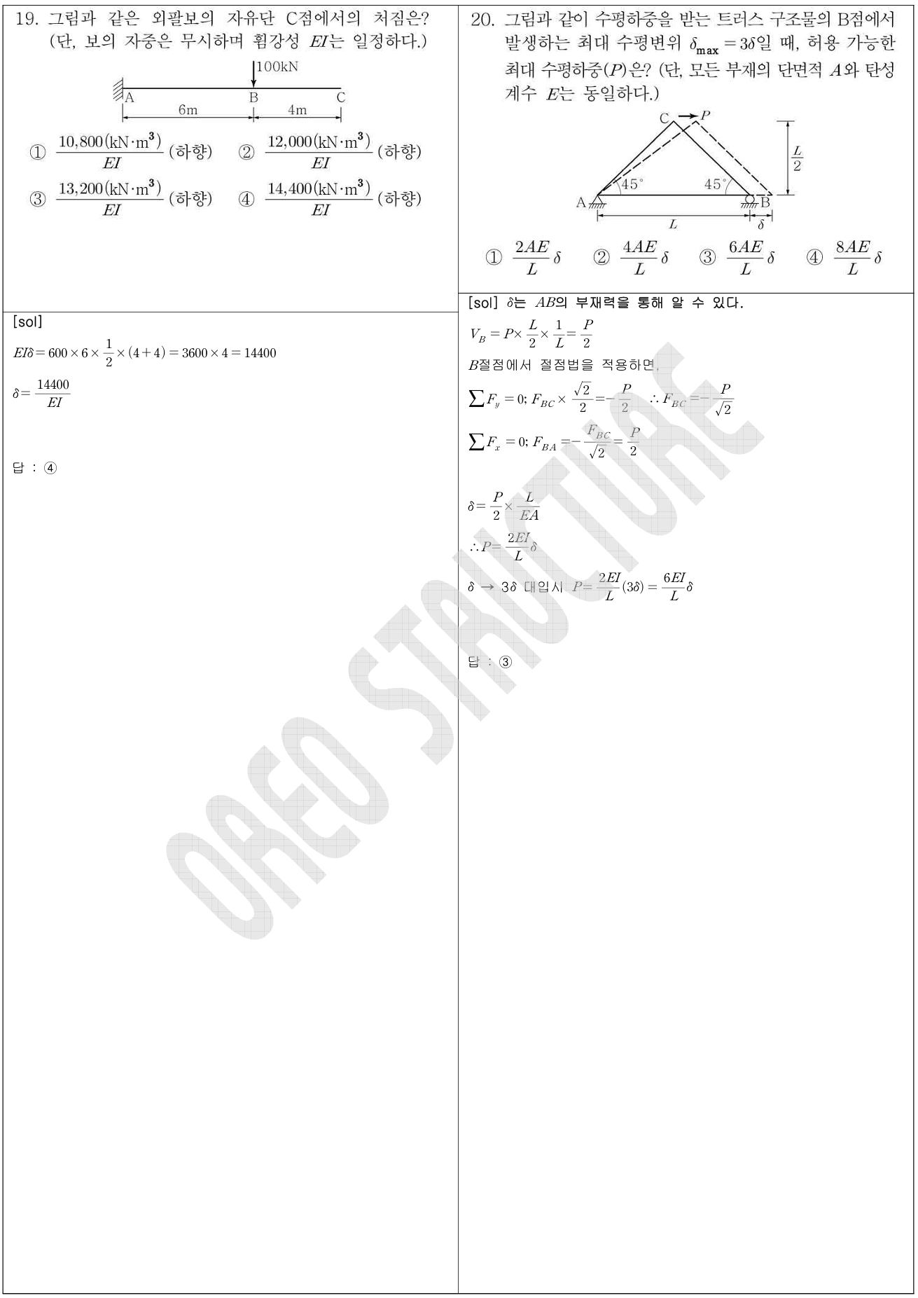 19번 ( 공액보법의 활용, 20 (트러스 절점법 및 부재 강성도 활용)
