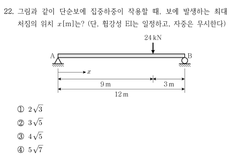 보기 1은 √3을 대략 1.7이라 했을 때 9m span의 절반도 못오는 값이므로 (집중하중과 멀리 떨어져 있음)