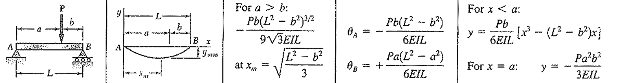 보 길이상 오른쪽보다 왼쪽이 훨씬 길기 때문에 왼쪽 쪽에서 더 큰 처짐이 발생할 것입니다. - 즉, 하중 위치(왼쪽 지점) 근처에서 최대 처짐 발생 예상.