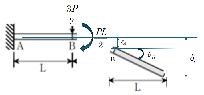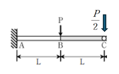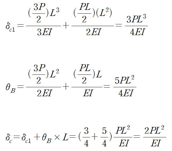 단순화된 구조물에서 C점의 처짐( δc ) 을 구하는 것은 생각보다 매우 간단합니다.