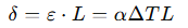 온도 변화로 인한 자유 변형량은 다음과 같이 표현됩니다.