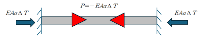 추가 ΔT의 온도 상승이 생겨 부재력 (압축력)이 생겼다고 해석되어야 합니다.
