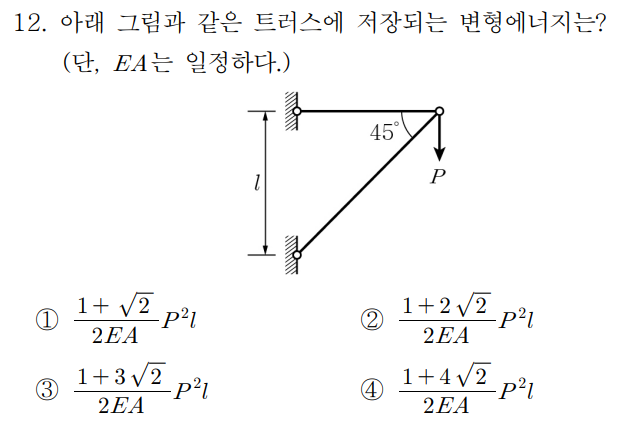 이번 문항은 “변형에너지”만 묻지만, 확실한 개념 정리를 위해 다음과 같은 넓은 개념의 연결고리를 모두 학습해야 합니다.