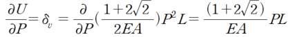 따라서 위에서 산정한 변형에너지를 P에 대해 미분하면 P 방향에 대한 처짐이 산정됩니다.